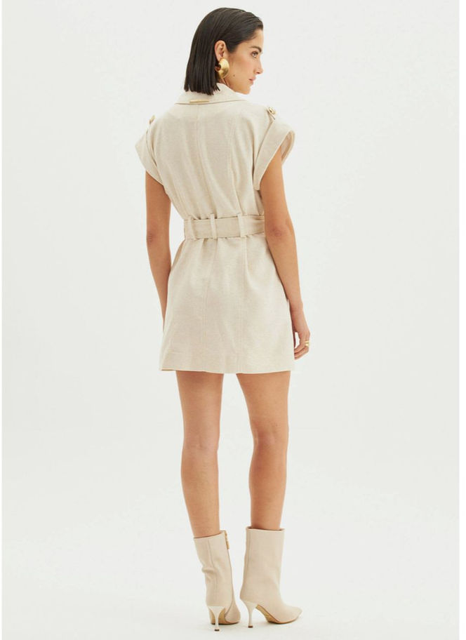 Esse vestido em alfaiataria curto é repleto de estilo. Possui mangas curtas, gola camisa e bolsos. O fechamento em botões personalizados e a tira para amarração na cintura trazem um toque feminino e chic. Aposte!.